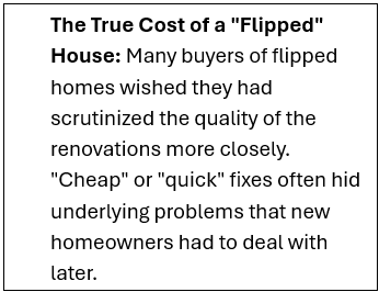 So what is a flipped home? It’s a home that was purchased by an investor who remodels the home, updates it, and sells it for a profit. The turn-around between buying and reselling the home is quick. The goal is to maximize profit and every day a home is being updated adds costs.